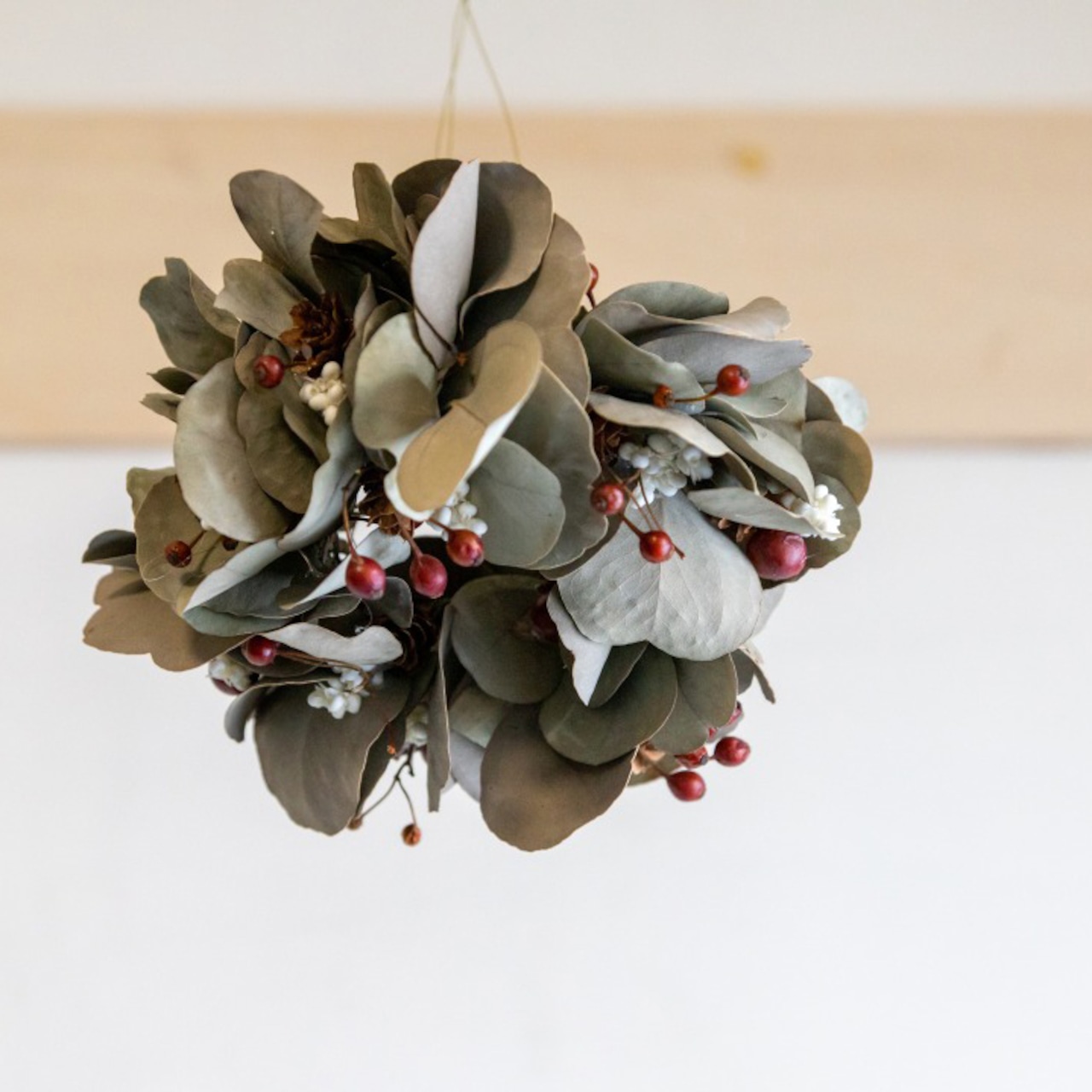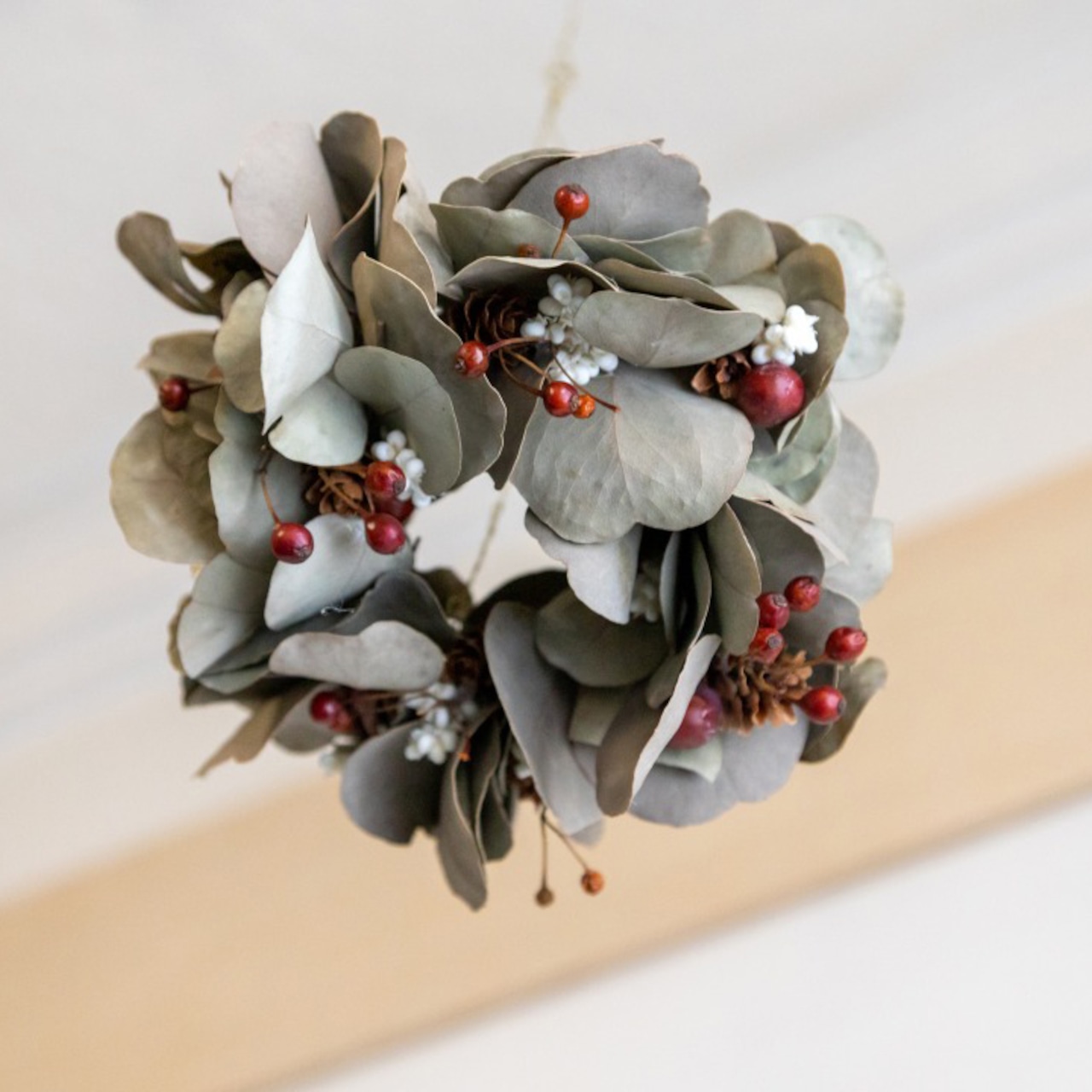 リースの裏にリングを取り付けていますので、壁掛けリースにもなる2Way仕様です。